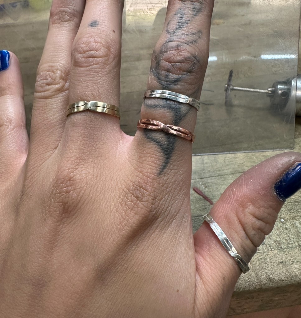 metal working has allowed me to expand my craft, reinforce the longevity of my pieces, and practice patience when spending hours working meticulously on a single work.Â